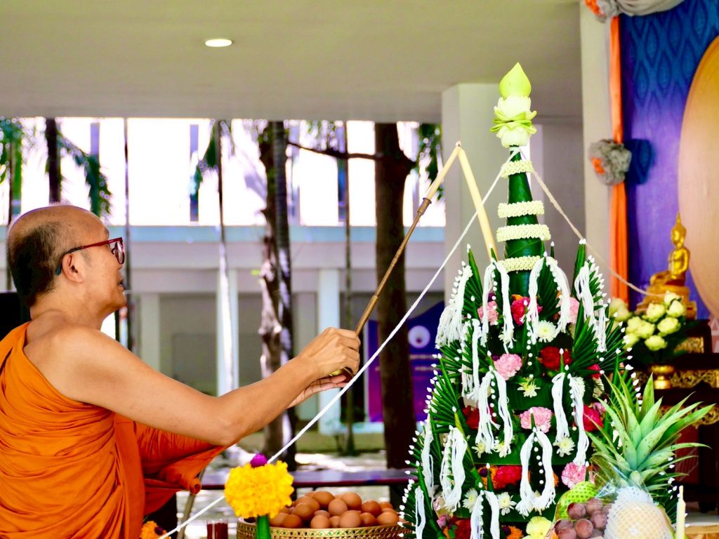 ในเวลา 10.39 น. บัณฑิตวิทยาลัยฯ ได้จัดพิธีบายศรีสู่ขวัญเพื่อความเป็นสิริมงคลแก่นักศึกษาใหม่ โดยมี บัณฑิตพราหมณ์ ดร.กฤตสุชิน พลเสน อาจารย์ประจำบัณฑิตวิทยาลัยวชิรญาณวโรรส เป็นผู้ประกอบพิธี และได้รับเมตตาจาก พระครูปลัดสุวัฒนวิสุทธิสารคุณ, ผศ.ดร. รองอธิการบดี มมร และอาจารย์ประจำบัณฑิตวิทยาลัยวชิรญาณวโรรส เป็นประธานในการจุดเทียนบูชาเครื่องประกอบบายศรี ภายหลังเสร็จสิ้นพิธี ได้มีการมอบเข็มสถาบันแก่นักศึกษาใหม่ และคณาจารย์ผู้ทรงคุณวุฒิได้ร่วมผูกด้ายสายสิญจน์มงคลเพื่ออวยพรแก่นักศึกษาใหม่ให้ประสบความสำเร็จในการศึกษา