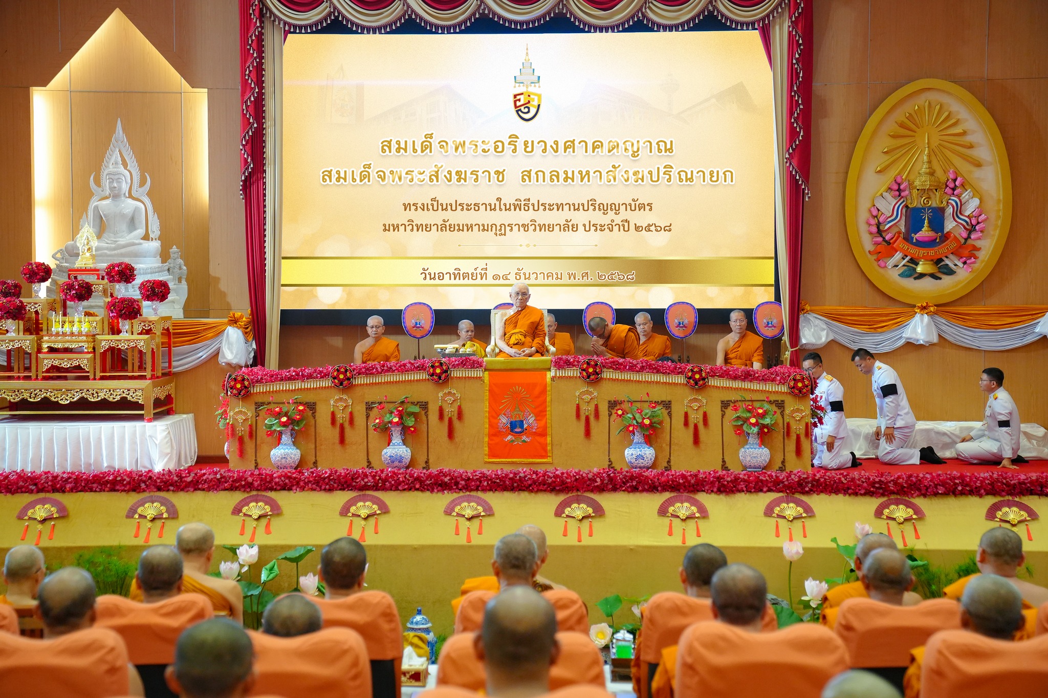 วันอาทิตย์ที่ ๑๔ ธันวาคม ๒๕๖๘ เวลา ๑๓.๓๐ น. เจ้าพระคุณ สมเด็จพระอริยวงศาคตญาณ สมเด็จพระสังฆราช สกลมหาสังฆปริณายก เสด็จไปมหาวิทยาลัยมหามกุฏราชวิทยาลัย อำเภอพุทธมณฑล จังหวัดนครปฐม ในพิธีประทานปริญญาบัตร ประจำปีการศึกษา ๒๕๖๘